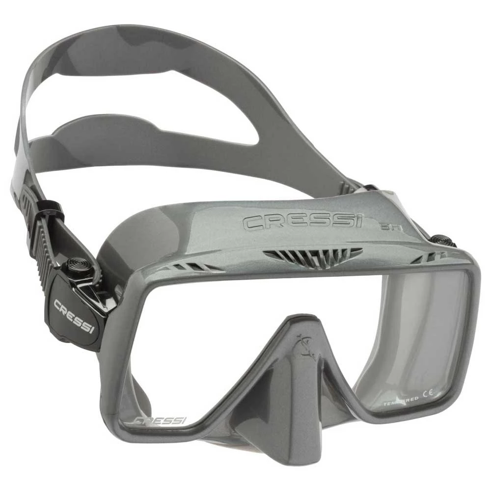 This frameless single glass mask is made of trendy shiny silicone and has a very small internal volume. Rigorous and squared design suitable even for demanding divers. Fits most face shapes. Buckle with micrometric adjustment system. Supplied in a sturdy protective box.