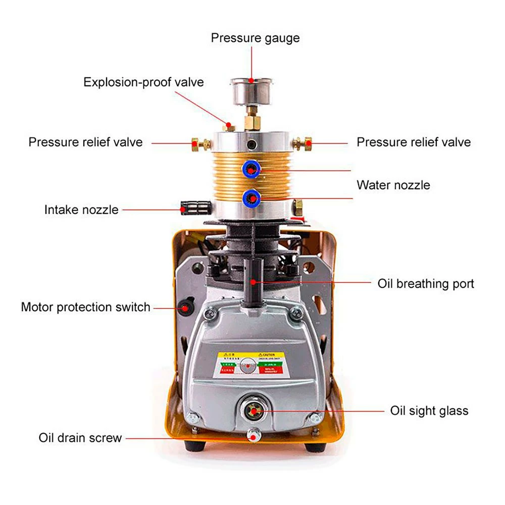 This 1800W 220v electric compressor is ideal for charging small breathing air equipment at 200 BAR (2900 psi).