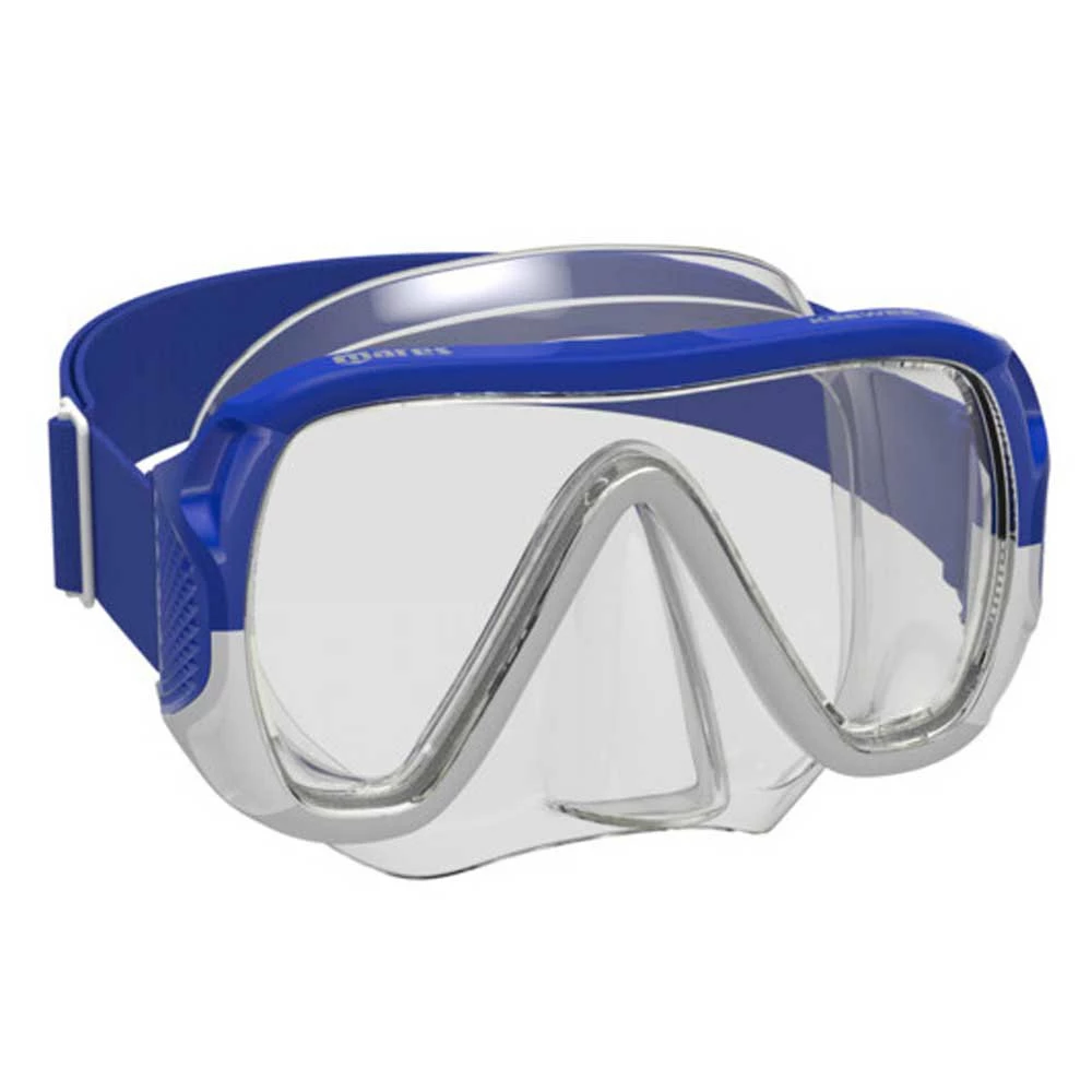 The Keewee snorkel mask is a single lens mask. The mask has a silicone face piece, making it perfect for long adventures in the water. The Keewee model from Mares is robust and durable. The headpiece, consisting of an elastic headstrap, makes it comfortable to wear, even with long hair. It is also extremely easy to adjust with the a sliding buckle. The field of vision is very wide thanks to the low-profile frame and the shape of the tempered glass lens.